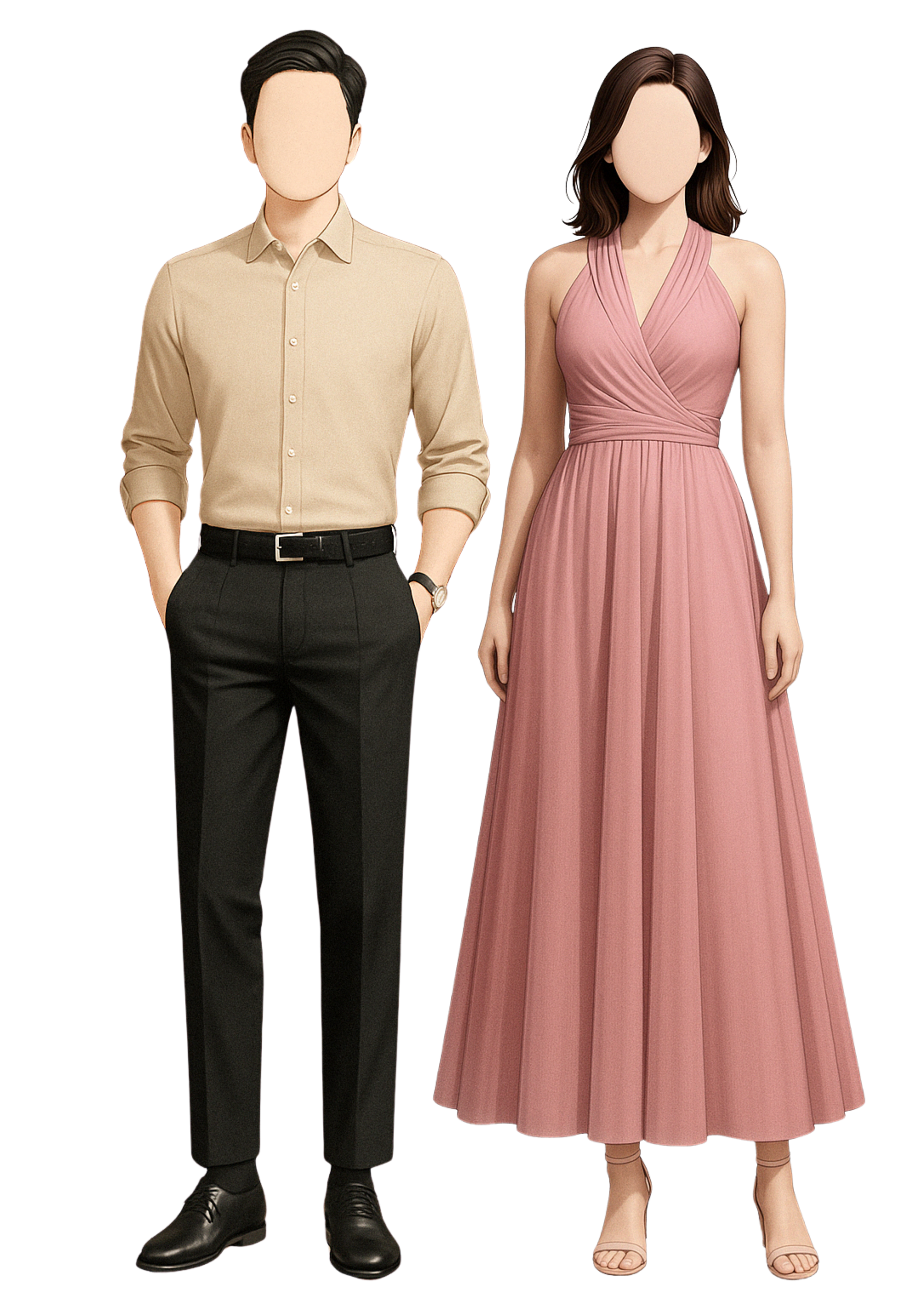 Ladies: Formal Gown, Casual Dress following the color palette.
