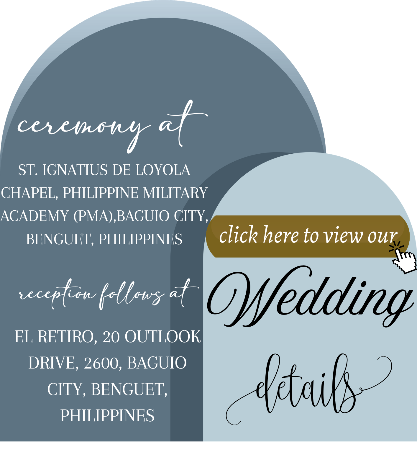 The ceremony will be held in the church, a holy place where we will exchange vows before God, surrounded by our loved ones as witnesses to our lifelong promises. The ceremony will include +the time-honored Filipino customs such as the veil, cord, and coin ceremonies, symbolizing unity, fidelity, and shared blessings.