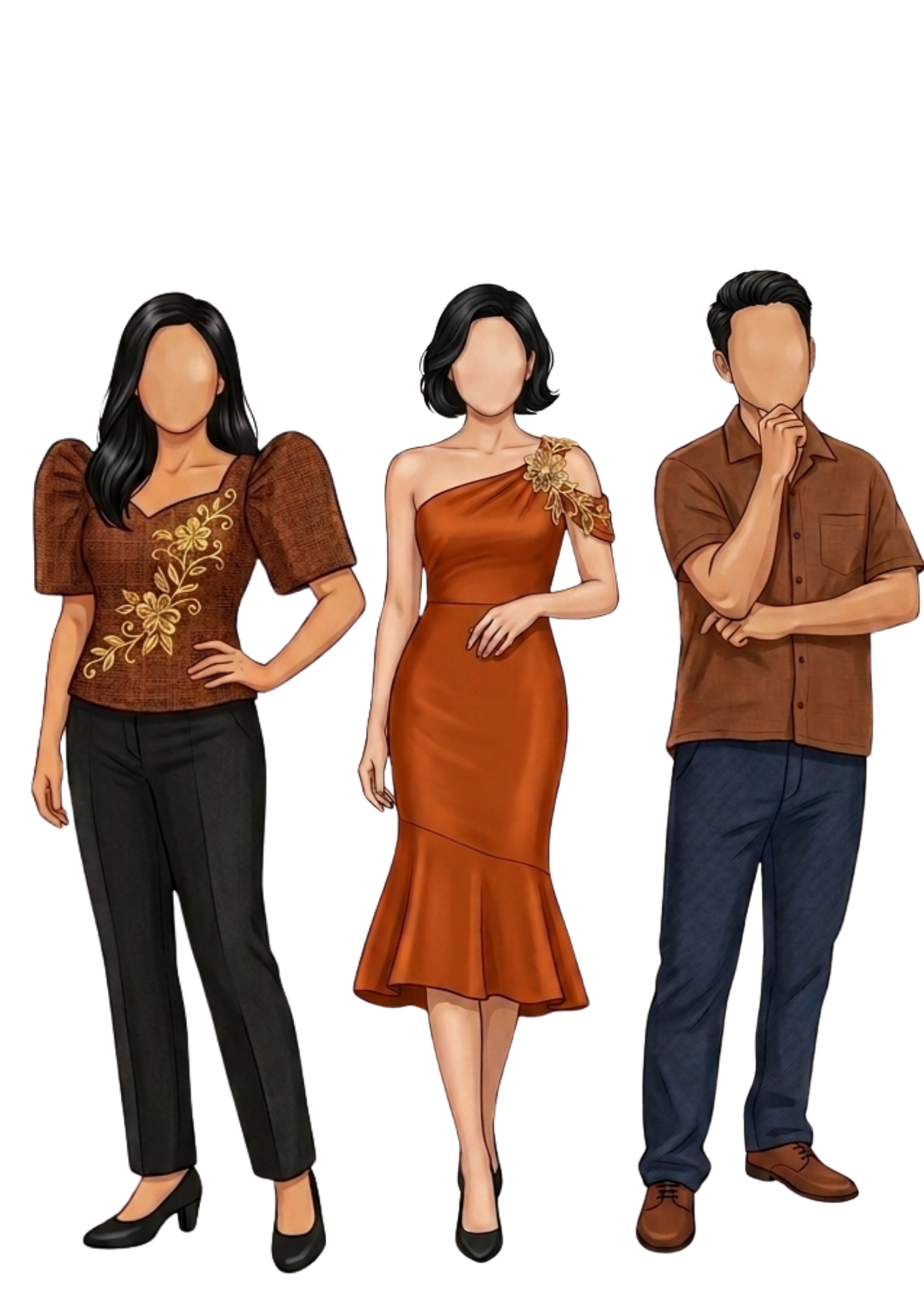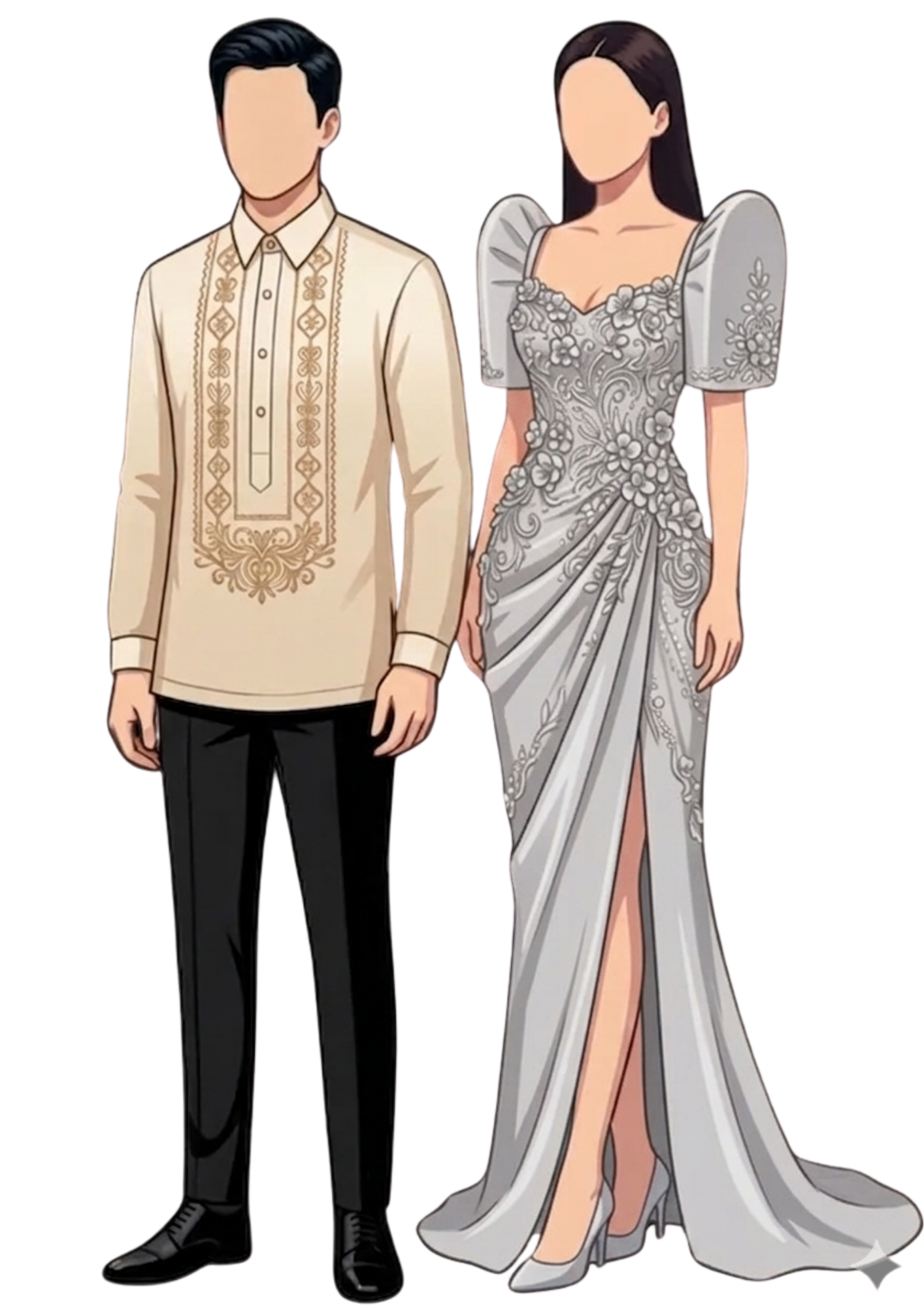 WE WOULD LOVE OUR GUEST TO COME IN WEARING MODERN FILIPINIANA FORMAL OR SEMI-FORMAL ATTIRE. LADIES ARE ENCOURAGED TO WEAR A PARANG FILIPINIANA OR TARIK. TO MAKE OUR DAY EVEN MORE SPECIAL, KINDLY WEAR THE PRESCRIBED DRESS CODE.