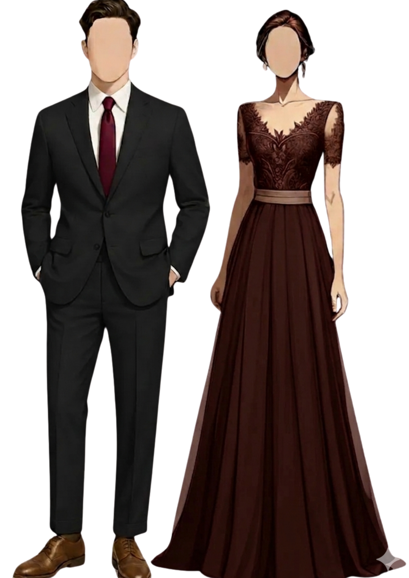 Gentlemen: Black Suit and Burgundy Tie
