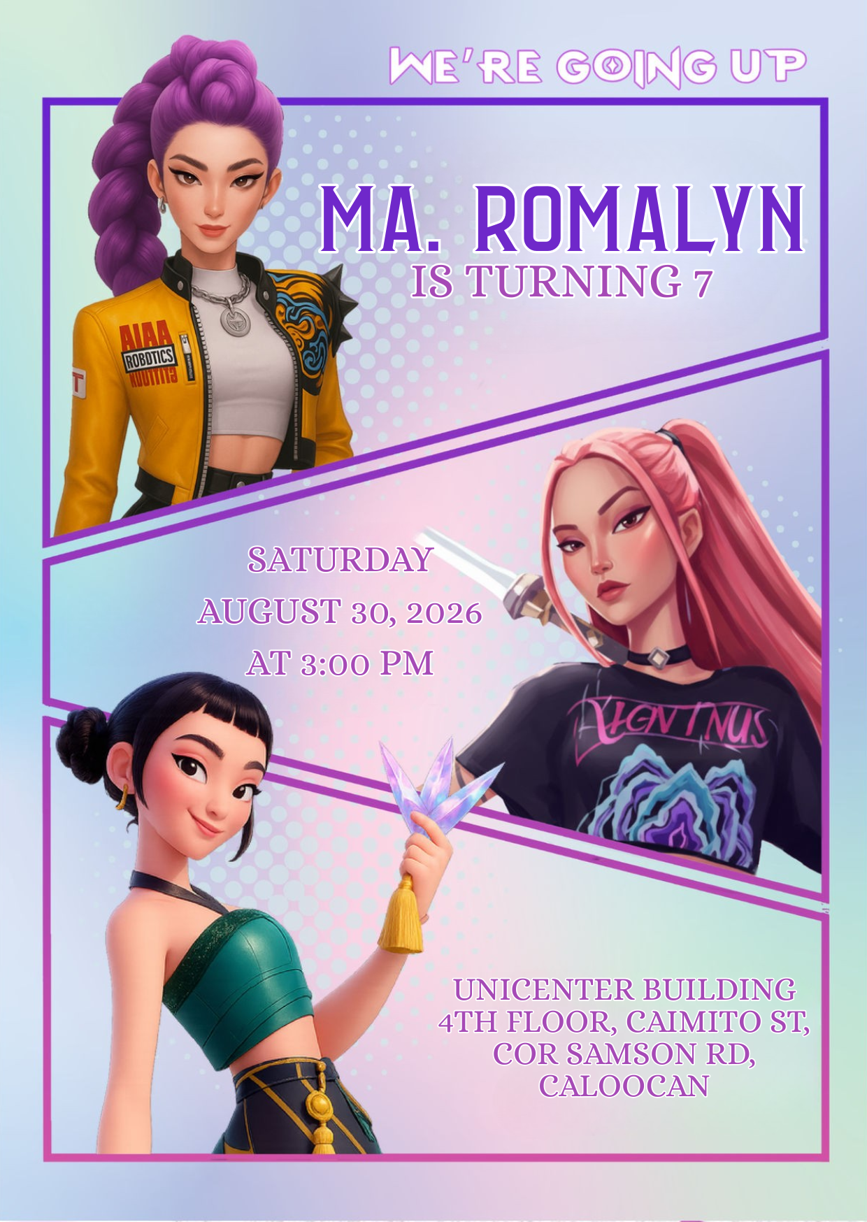 Attention Hunters! You are cordially invited to my 7th Birthday Mission. I’ve spent seven years training for this moment, and now it’s time to celebrate the big win with the people who mean the most to me. Your presence is the best loot I could ask for! Let’s fill the night with neon lights, K-Pop beats, and demon-hunting fun.